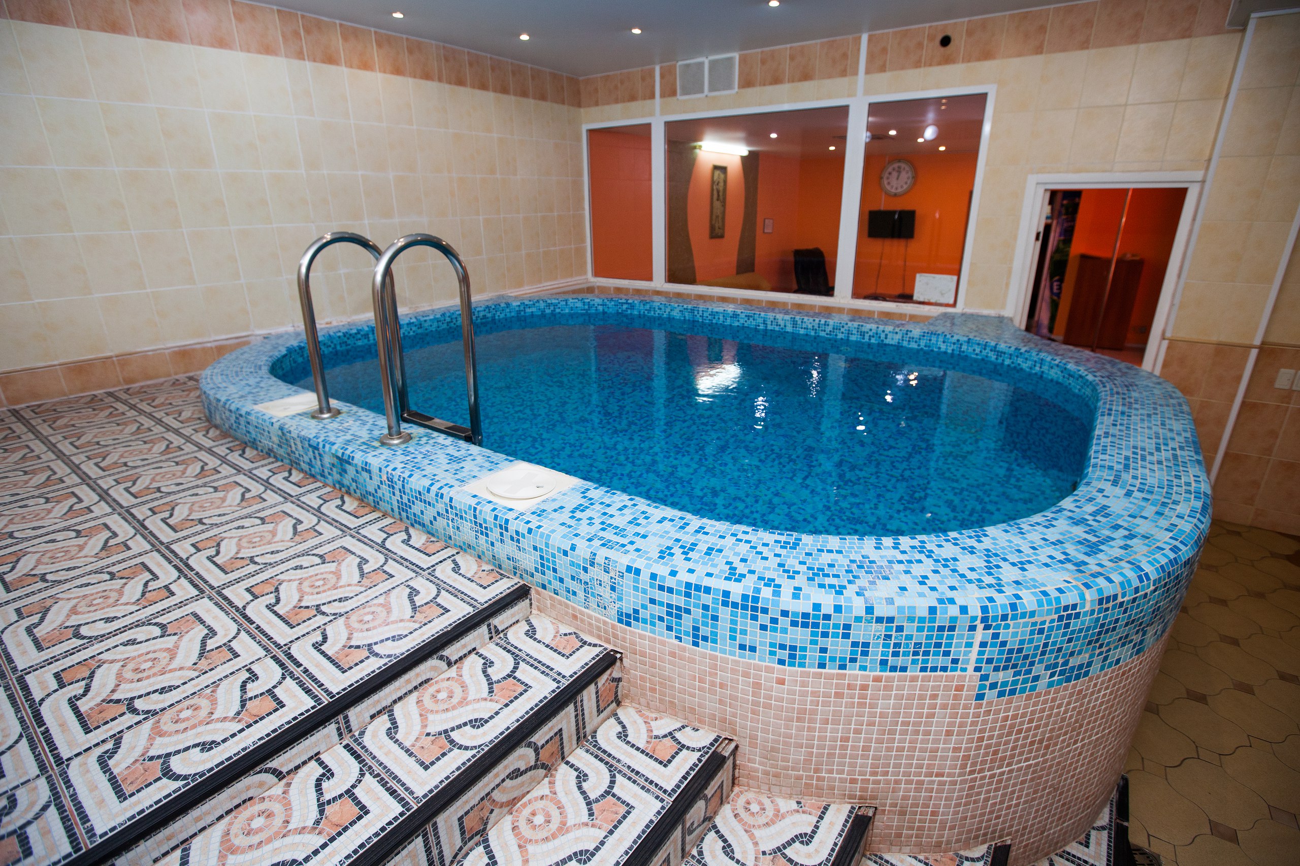 - размер - 3х4 м (в здании гостиницы), вода пресная, пользование бассейном входит в стоимость, для посетителей сауны работает круглогодично