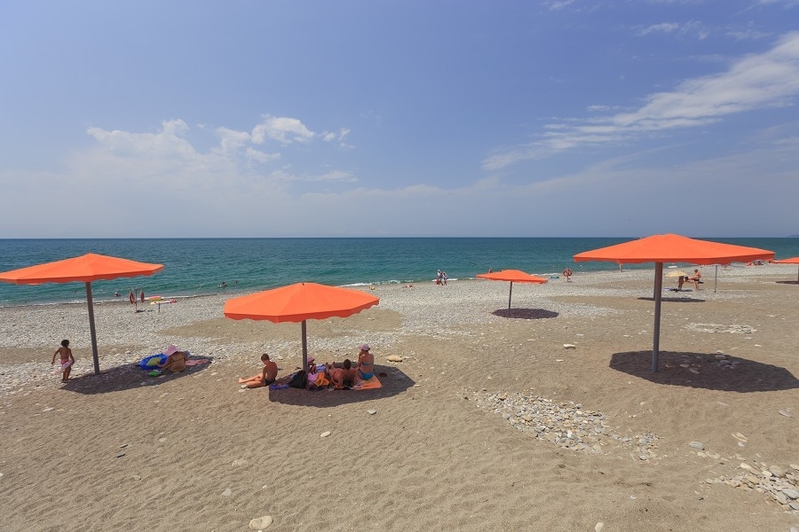 Пляж: галечный оборудованный, в 300 м от санатория. На пляже: лежаки, теневая зона, кабинки для переодивания, душевые, медпункт и спасательный пункт, водные развлечения (катер, «банан», услуги дайвинга).