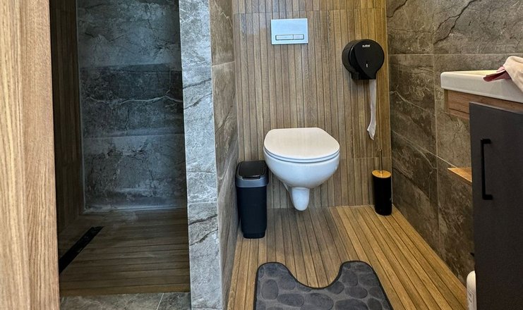 Санузел: душ, раковина, унитаз, фен