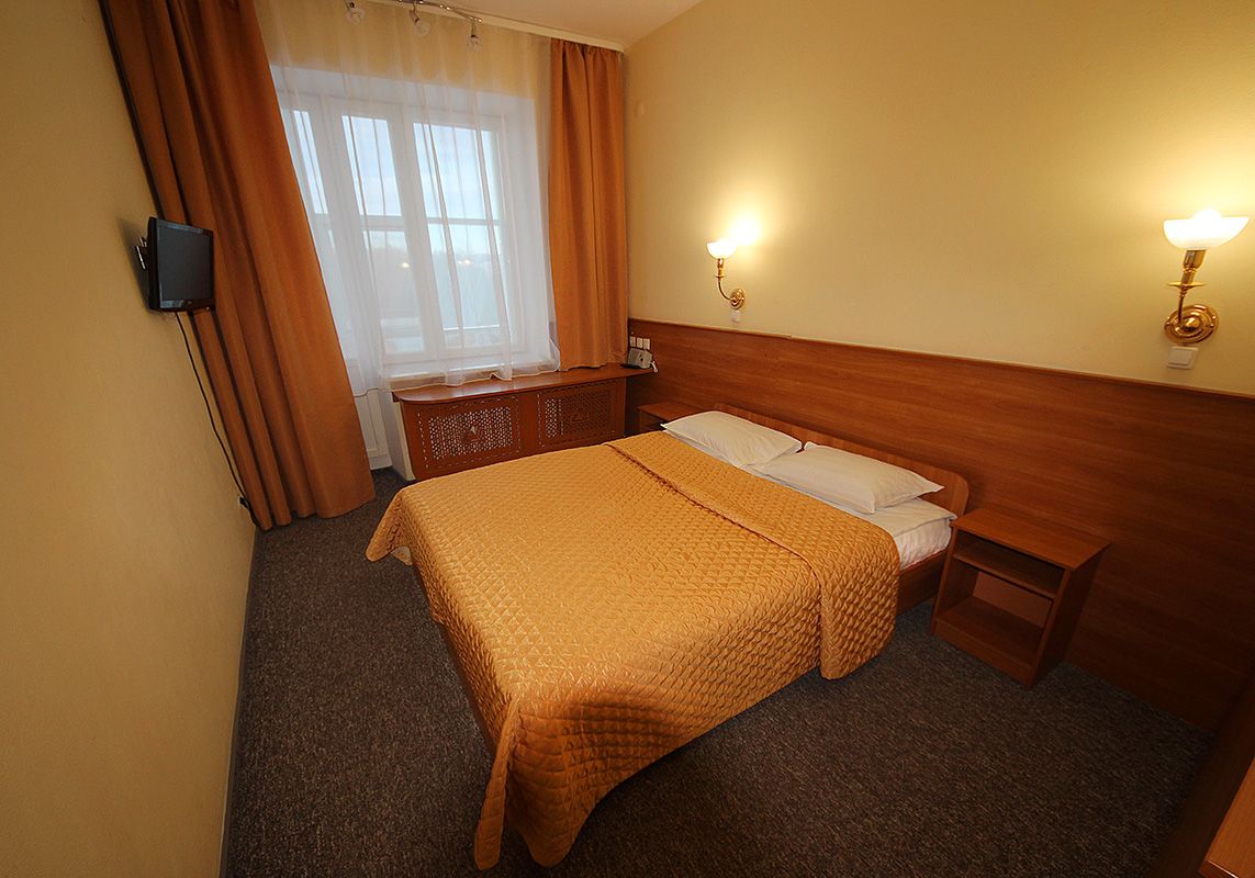 Оснащение номера: номер однокомнатный, односпальная кровать 90 см (1 этаж 140 см), шкаф для одежды, стулья, прикроватная тумбочка, ЖК телевизор, фен, сушилка для белья, сейф, холодильник, вешалка, столик с необходимым набором посуды, чайник, напольное покрытие-ковролин